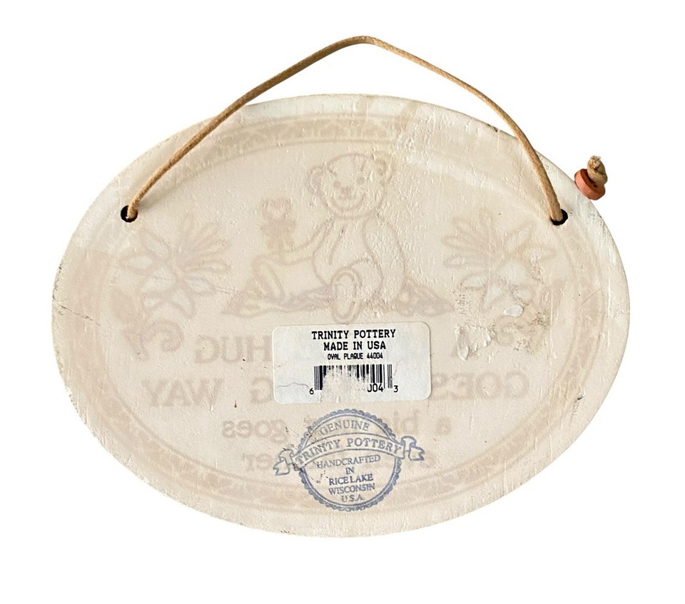 Trinity Pottery Hanging Plaque Ceramic Teddy Bear Vintage A Little Hug 7” x 5.5”