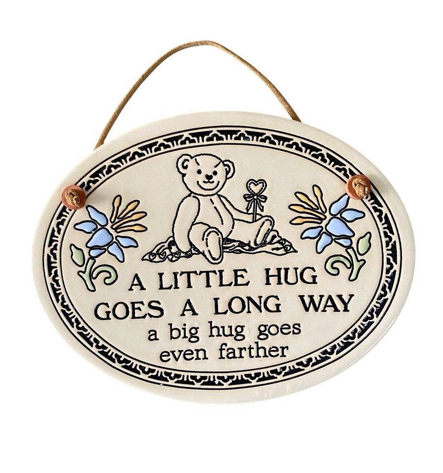 Vintage Ceramic Hanging Wall Plaque A LITTLE HUG GOES A LONG WAY a big hug goes even farther Sweet vintage decor