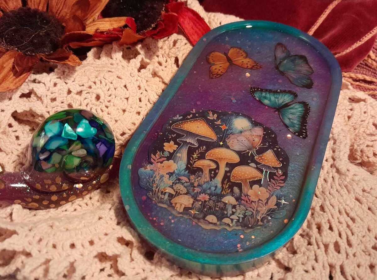 - Trinket Tray and Snail Buddy GIFT SET Handmade Decor Fantasy Mushrooms Bathroom