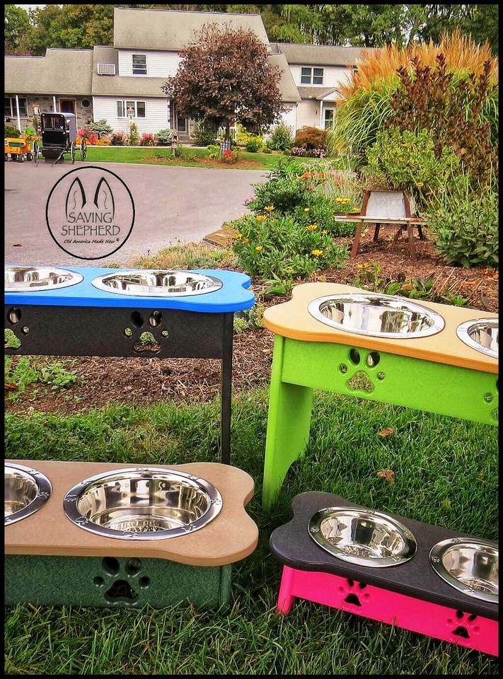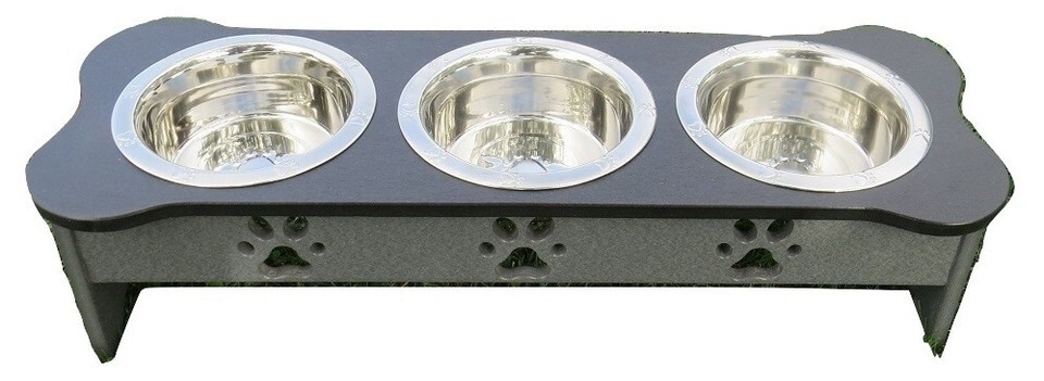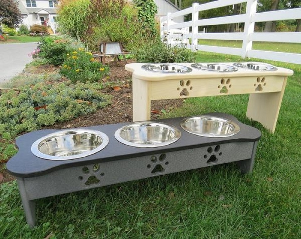 - TRIPLE DISH ELEVATED POLY FEEDER - 5"h for SMALL DOG PUPPY Amish Handmade in USA