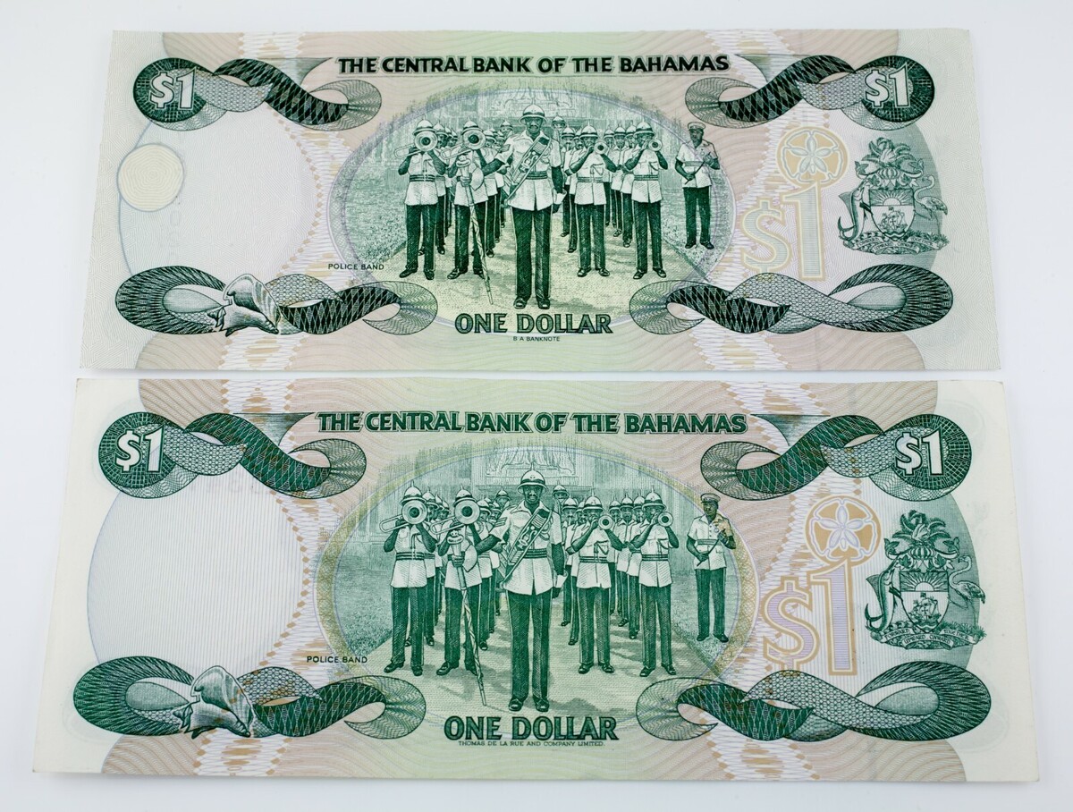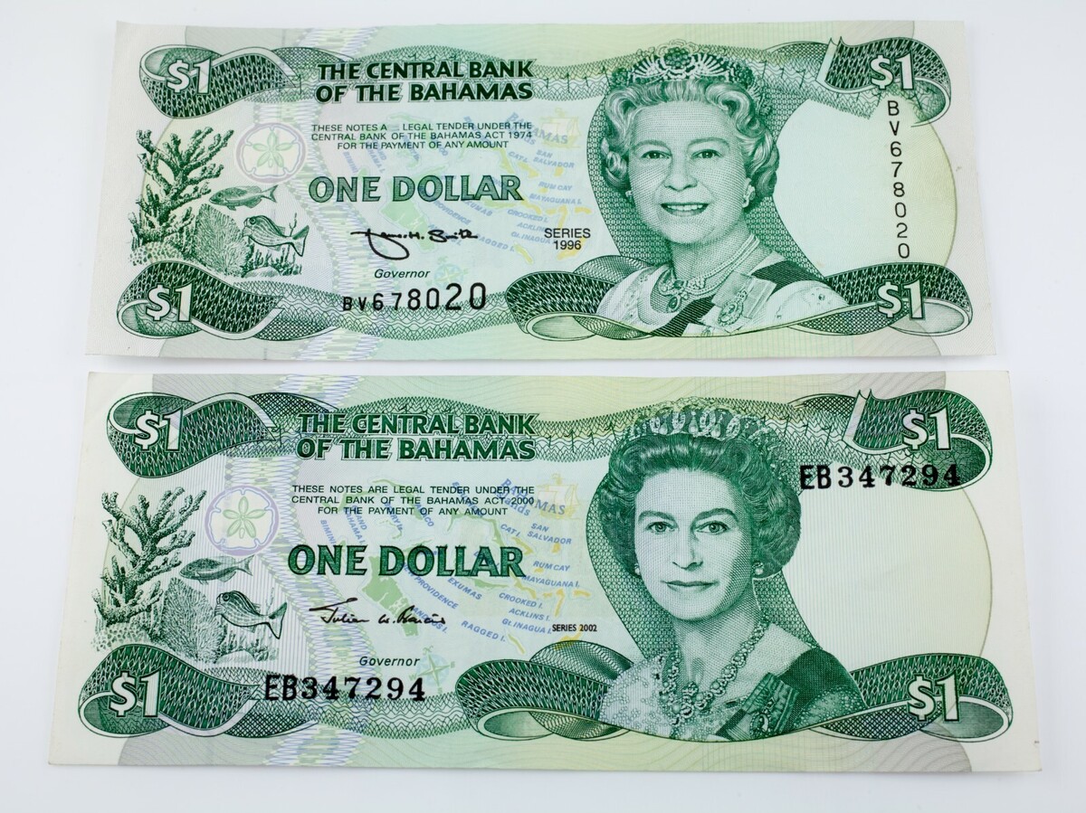 Trois (3) Bahamas 1 dollar billets // 1996, 2002, 2008 Bills // XF-AU Conditions