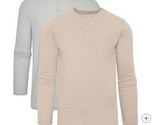 True Classic Mens T-Shirt Tan Gray Grey 2-Pack Long Sleeves Henley Bicep-Hugging