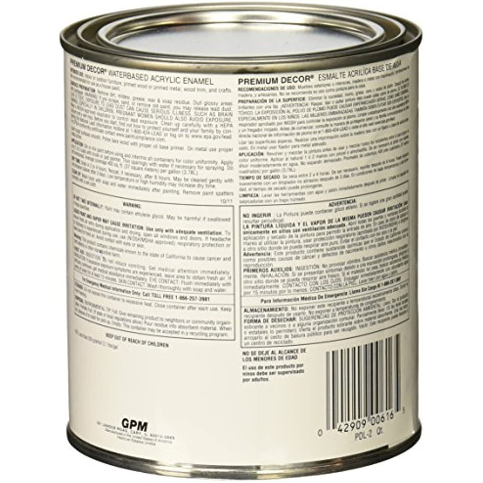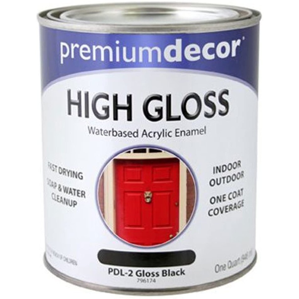 Product Description Pdl-2, premium decor, QT, black, waterborne gloss enamel, VOC less than 250 grams per Liter. Adds extra shine to your product. Manufactured in United States. From the Manufacturer True Value Mfg. Company PDL2-QT PD 1 Quart Black Waterborne Enamel is for indoor and outdoor use. Fast drying with easy soap and water cleanup. One coat coverage. Water based acrylic enamel. Durable, attractive finish.