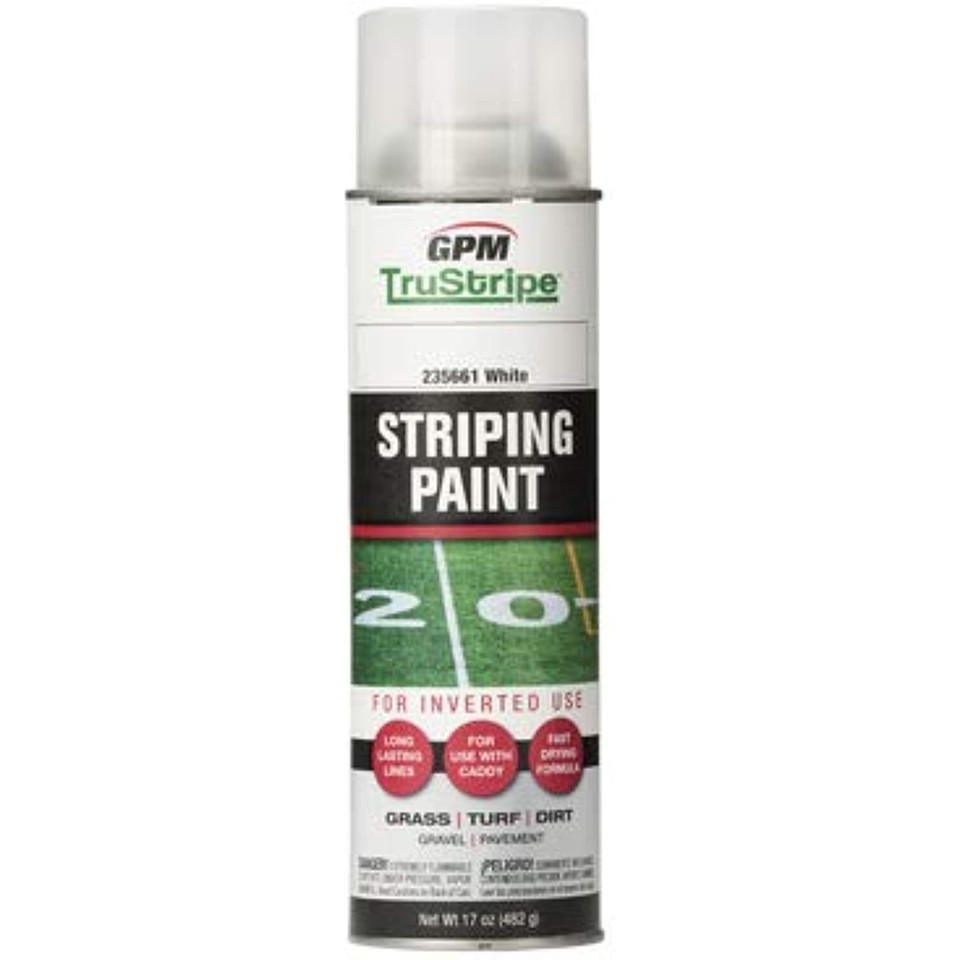 Inverted Aerosol Striping Paint creates crisp and clean, long lasting 2? to 4? straight lines quickly and easily. The premium grade formula is guaranteed to apply smoothly and evenly. Product is available in white and sold in an 18oz size.
