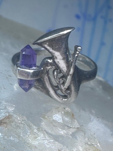 - Trumpet ring amethyst horn musical instrument band sterling silver size 7.50 wom