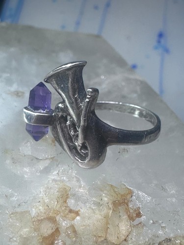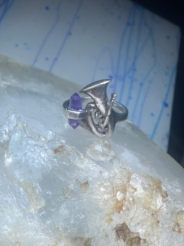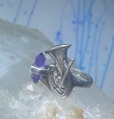 Trumpet ring amethyst horn musical instrument band sterling silver size 7.50 wom