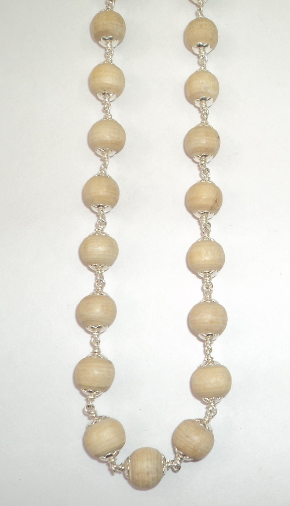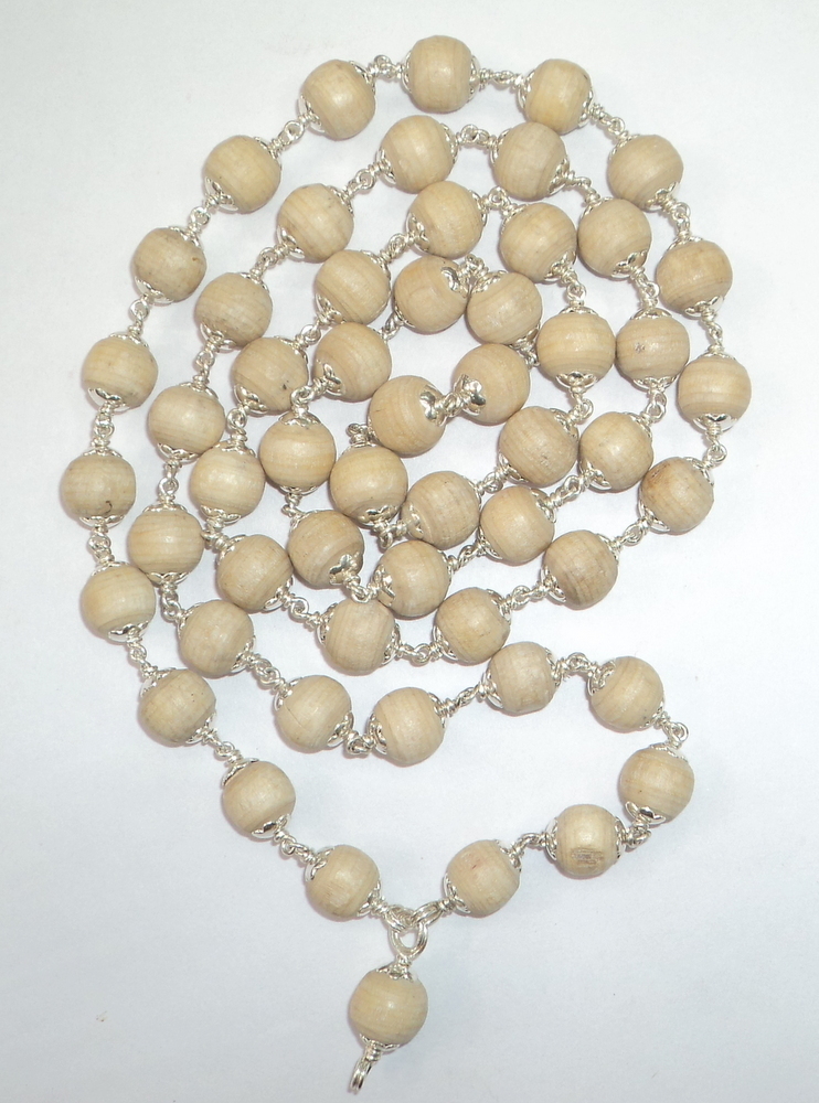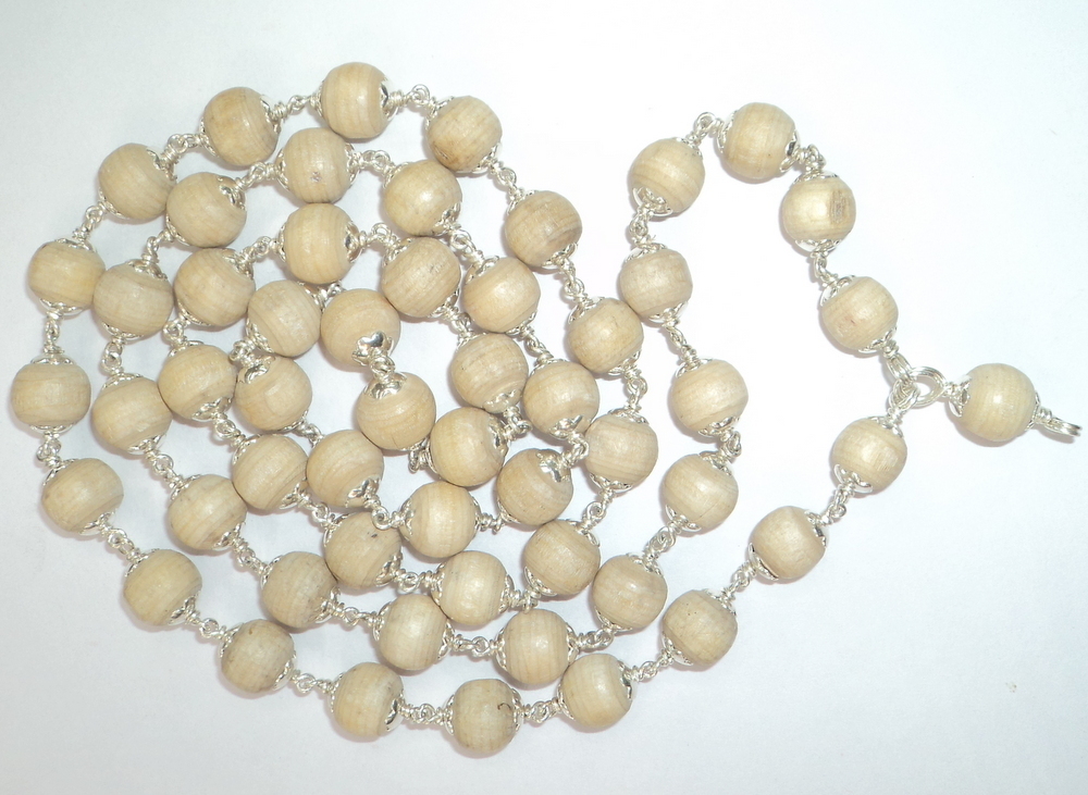 Product Name : White Tulsi Beads Mala In Silver Caps - 12 MM - 55 Beads Description Tulsi means "the incomparable one". Tulsi is Divinity. Of Beads : 54+1 Size Of Beads : 12 mm Length : 21 inches (Around the Neck) {Easily wearable from the top of head without opening a Mala}