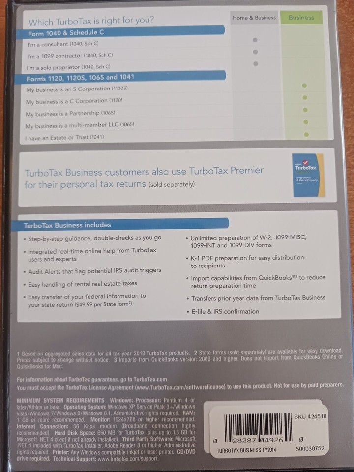 USED, Very Good Condition. TurboTax Business 2014 CORPORATIONS PARTNERSHIP, ESTATES TRUSTS Federal Returns Federal E-File.