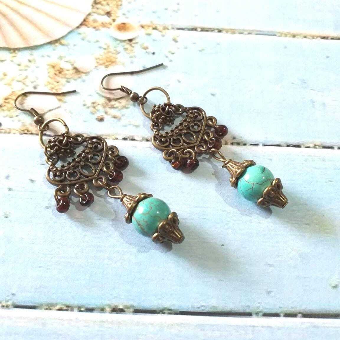 Turquoise jewelry set necklace earrings Victorian necklace and earrings Bronze necklace earrings Bohemian necklace Vintage necklace gift set