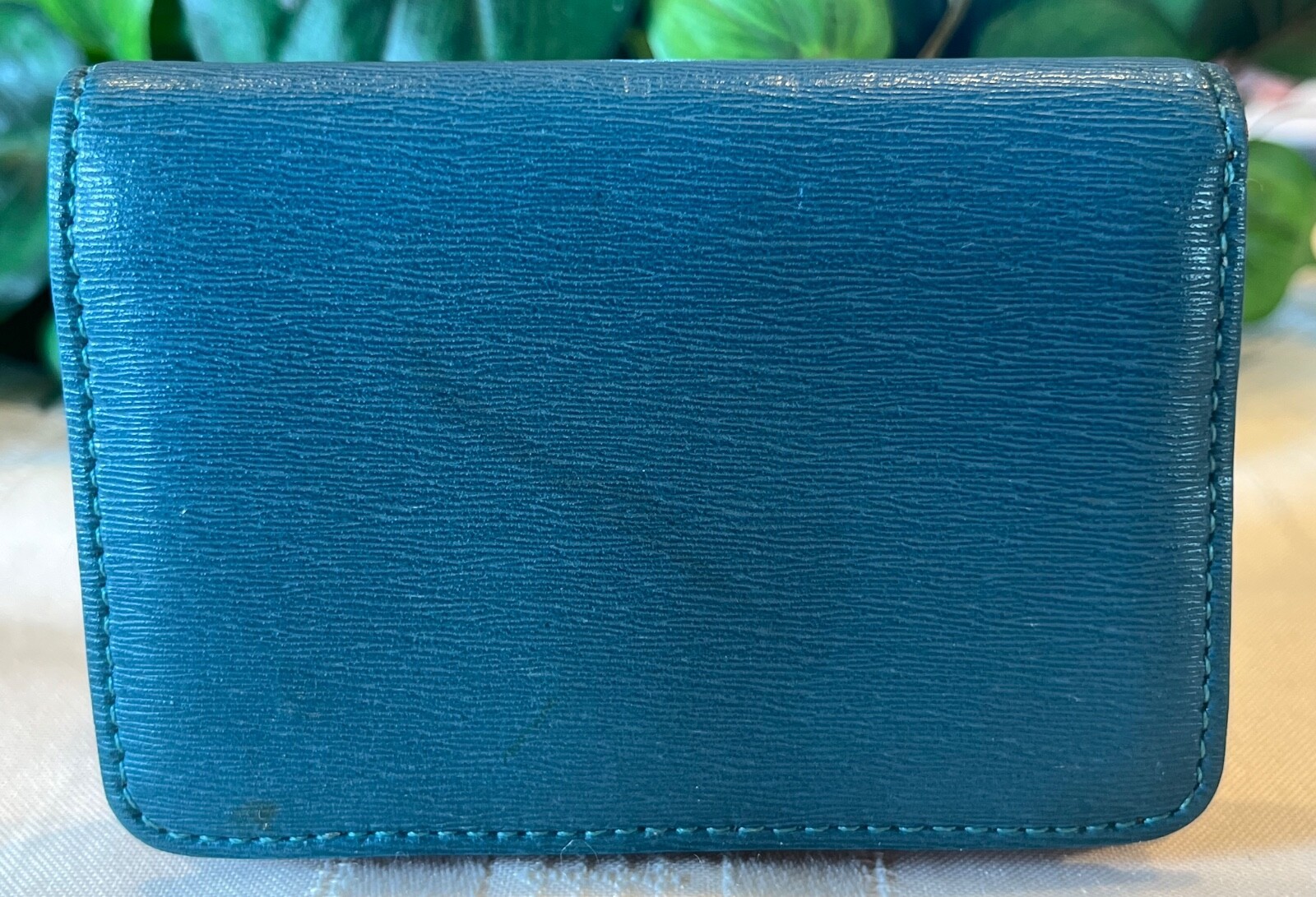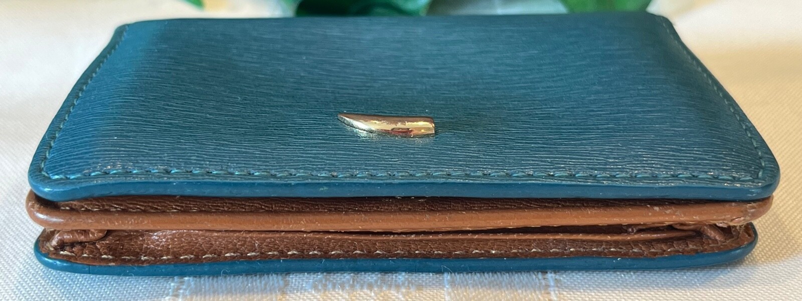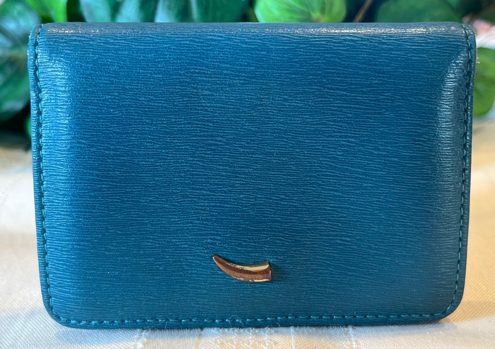 All pictures and descriptions are the copyrighted property of TheBargainPrincess. Please do not use my text or my images without prior permission. Guaranteed authentic TUSK SAFFIANO LEATHER ENVELOPE GUSSETED CARD CASE - Your purchase will be carefully wrapped in tissue. This preowned item is in very good condition. Interior and exterior are clean and odor free. Edges at the folds show some splitting of the leather but corners show no wear and no color loss. (See pictures.) SPECIFICATIONS: Item: Card case Pattern: Solid color blue saffiano textured leather exterior, smooth soft and supple tan leather interior Color: Blue exterior, tan interior Flap and snap closure with metal tusk logo on front Measurements: 4" wide x 3" high x 1" deep INTERIOR: ID window 2 open card pockets Additional gusseted pocket Attention international buyers: I have restricted my listings to domestic shipping only. International shipping is through eIS (International Shipping). Any taxes or duties are the responsibility of the buyer. Know your obligations. All domestic shipping charges include delivery confirmation. Shipping charges are based on either ground advantage or priority mail shipping and include a small handling charge. Handling charges include use of heavy packing tape, bubble wrap, packing peanuts, boxes, bubble envelopes, tissue paper, ribbon, adhesive shipping labels, daily trips to the post office to mail your purchases, etc. These are all supplies that I must purchase in order to carefully package and ship your items to assure that you receive them in satisfactory condition. Please ask any questions PRIOR to buying. I describe items as honestly as possible and to the best of my ability. Please note that I am not a representative or affiliate of any of the designers whose items I sell, nor do the designers endorse my items, however, my items are always guaranteed 100% authentic.