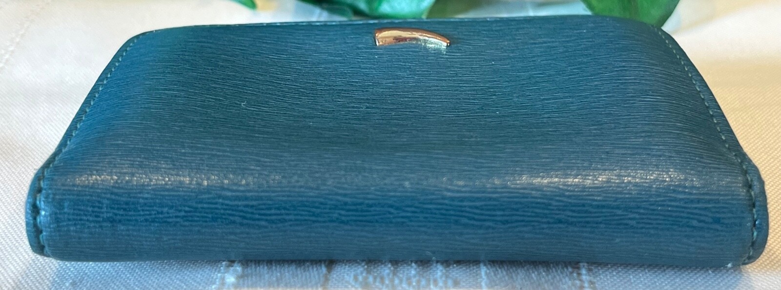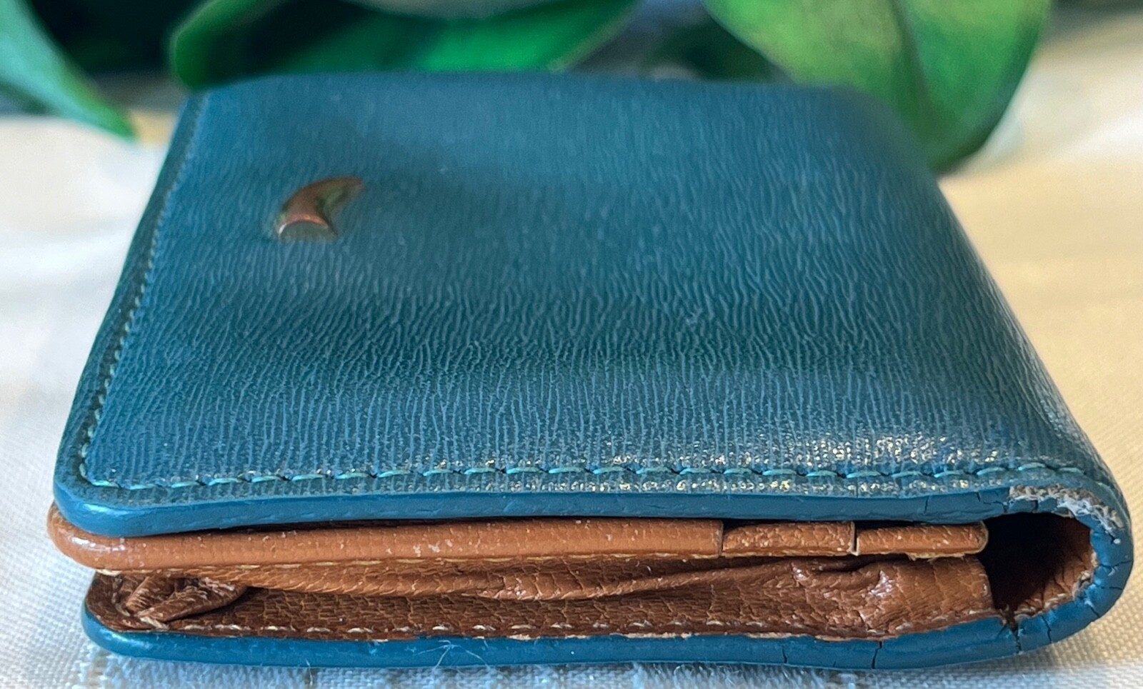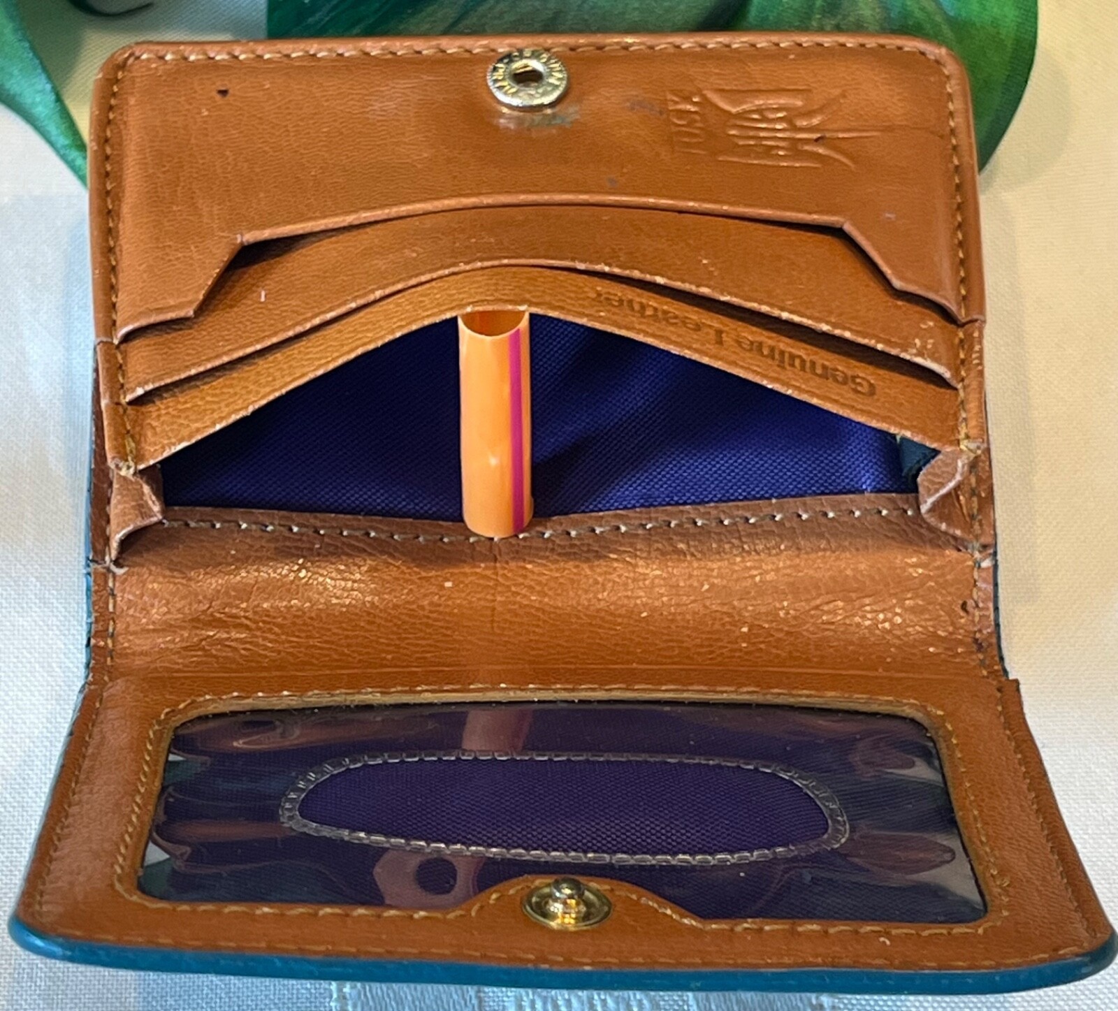 All pictures and descriptions are the copyrighted property of TheBargainPrincess. Please do not use my text or my images without prior permission. Guaranteed authentic TUSK SAFFIANO LEATHER ENVELOPE GUSSETED CARD CASE - Your purchase will be carefully wrapped in tissue. This preowned item is in very good condition. Interior and exterior are clean and odor free. Edges at the folds show some splitting of the leather but corners show no wear and no color loss. (See pictures.) SPECIFICATIONS: Item: Card case Pattern: Solid color blue saffiano textured leather exterior, smooth soft and supple tan leather interior Color: Blue exterior, tan interior Flap and snap closure with metal tusk logo on front Measurements: 4" wide x 3" high x 1" deep INTERIOR: ID window 2 open card pockets Additional gusseted pocket Attention international buyers: I have restricted my listings to domestic shipping only. International shipping is through eIS (International Shipping). Any taxes or duties are the responsibility of the buyer. Know your obligations. All domestic shipping charges include delivery confirmation. Shipping charges are based on either ground advantage or priority mail shipping and include a small handling charge. Handling charges include use of heavy packing tape, bubble wrap, packing peanuts, boxes, bubble envelopes, tissue paper, ribbon, adhesive shipping labels, daily trips to the post office to mail your purchases, etc. These are all supplies that I must purchase in order to carefully package and ship your items to assure that you receive them in satisfactory condition. Please ask any questions PRIOR to buying. I describe items as honestly as possible and to the best of my ability. Please note that I am not a representative or affiliate of any of the designers whose items I sell, nor do the designers endorse my items, however, my items are always guaranteed 100% authentic.