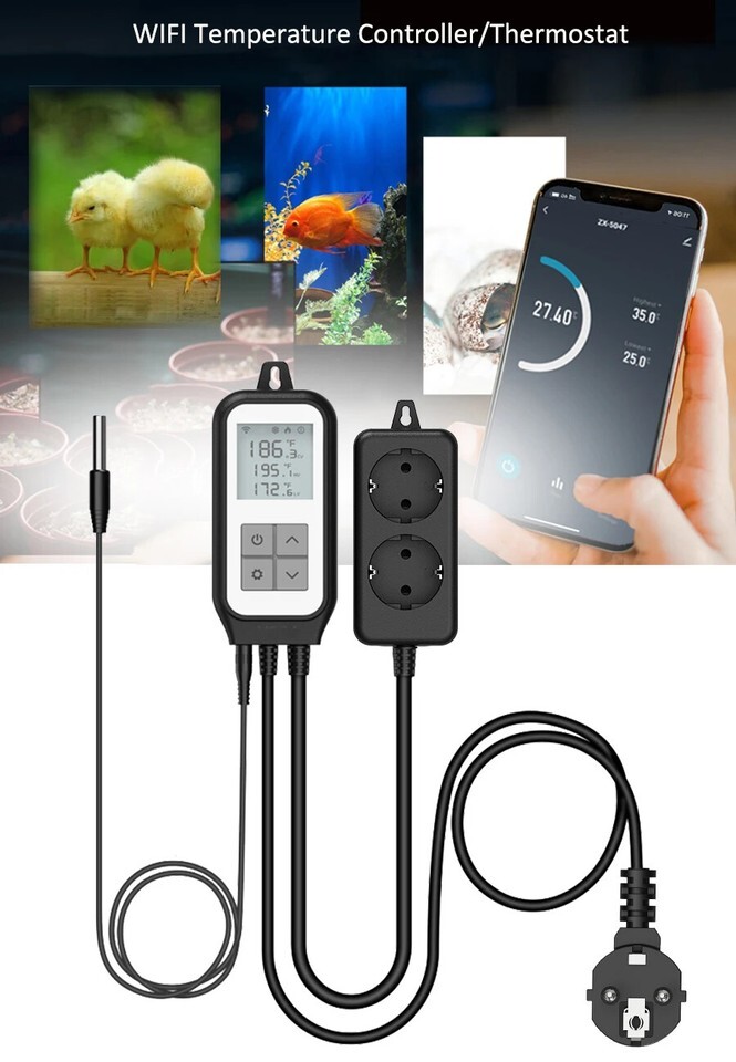 It is an easy-to-use, safe and reliable dual relay output temperature controller/Thermostat. It can be used as over temperature protection and automatic temperature control system for various electric appliances such as equipment for home-brew, pet breeding, incubation, seedling heat mats, terrestrial heat control, constant temperature cycle of heating pump, culture fermentation, accelerating germination, electric radiator, electric oven, etc.