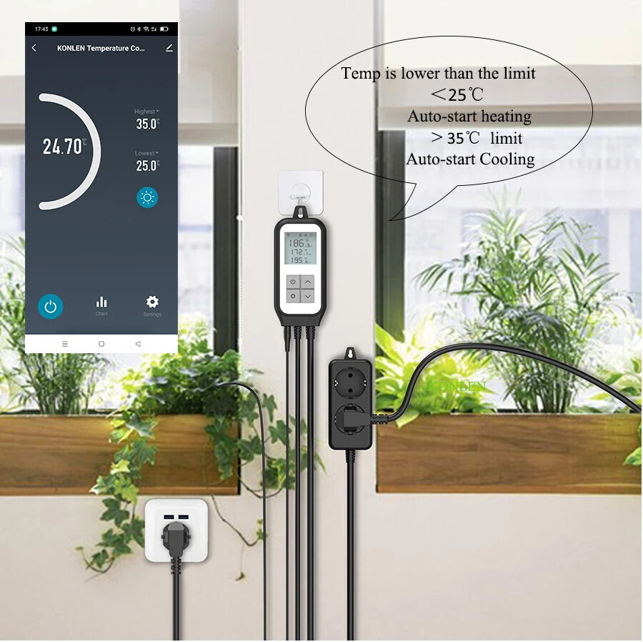 1. Dual relay output sockets: Be able to connect with refrigeration and heating equipment at the same time.