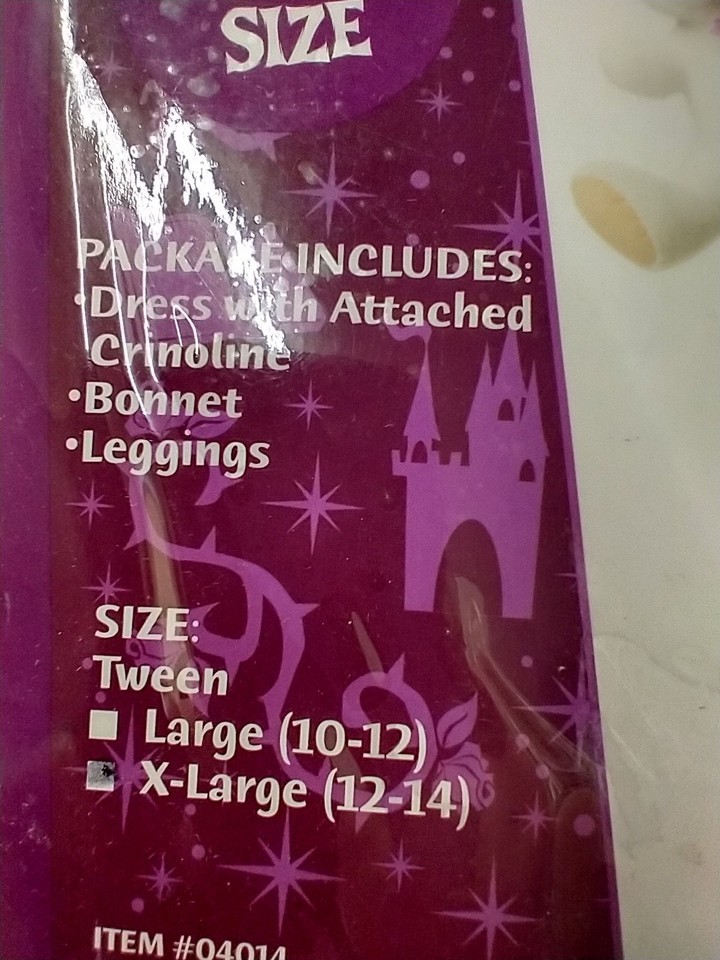 NOTE: Listing is for items listed as included only. Some accessories may be pictured but are not included. All are new in package. Costumes will have wrinkles / creases from being in package, please see care instructions before trying to iron, etc. A quick and easy way to help eliminate wrinkles is by using a spray bottle form of fabric wrinkle releaser (not included). New in package items may have long / loose threads or strings that may require trimming, these are not considered defects. For Costumes, please refer to chart in this listing as reference for estimating size, always choose a size larger if borderline. Individual results will vary. Please note everyone's body is made different and costumes may not fit as they fit the models in the photos. If you are unsure of the size you need or if your in between sizes, please choose the larger size. These are costumes and should fit comfortably. All sizing information is provided by manufacturer. NO RETURNS OR EXCHANGES ON COSTUMES. Some Features, Packaging, Colors and Texture may vary slightly. Manufacturer may change some Features, Packaging, Colors and Textures so actual costume may vary slightly from picture. Any known differences will be stated in description. Manufacturer's Photo. Sold as is New in Package. This item may ship in an envelope: folding and or removal of plastic hanger may be necessary.