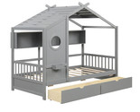 - Twin Size House Bed with 2 Storage Drawers and Fence Guardrails-Gray - Color: Gr