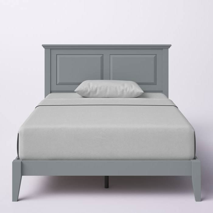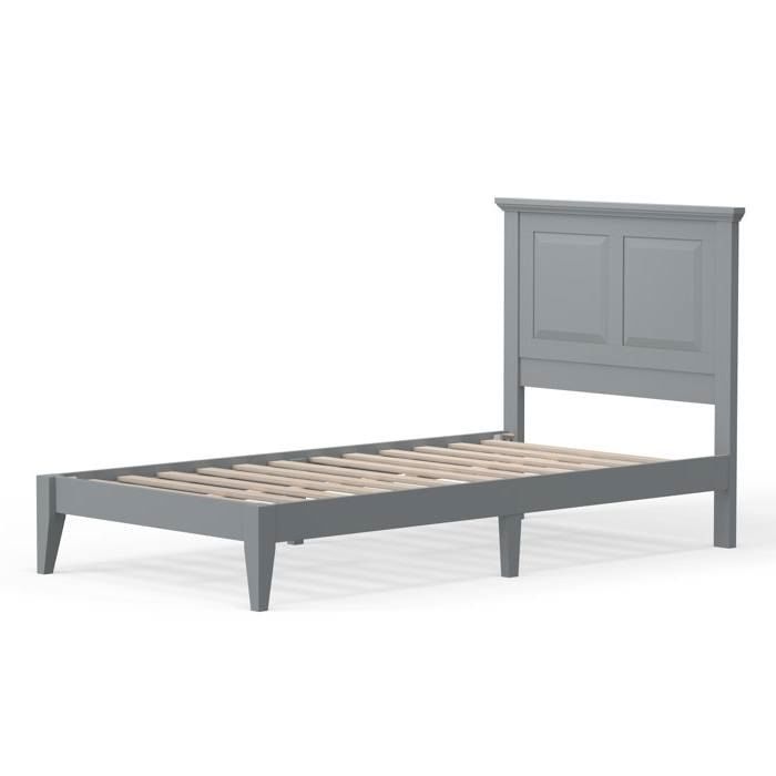 - Twin Traditional Solid Oak Wooden Platform Bed Frame with Headboard in Grey