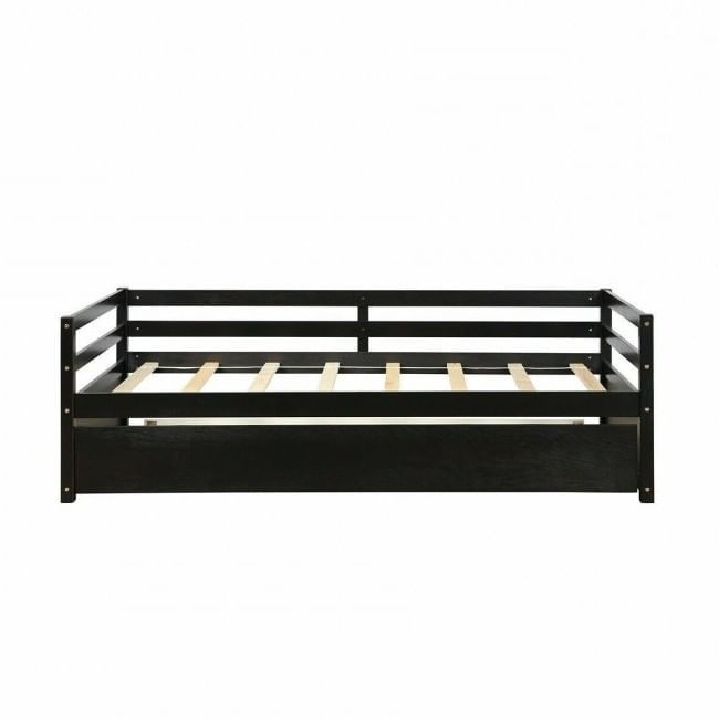 - Twin/Twin Dorm Style Trundle Daybed Platform Bed Frame in Espresso