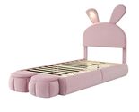 - Twin Upholstered Platform Bed w/ Cartoon Ears Headboard & LED Light