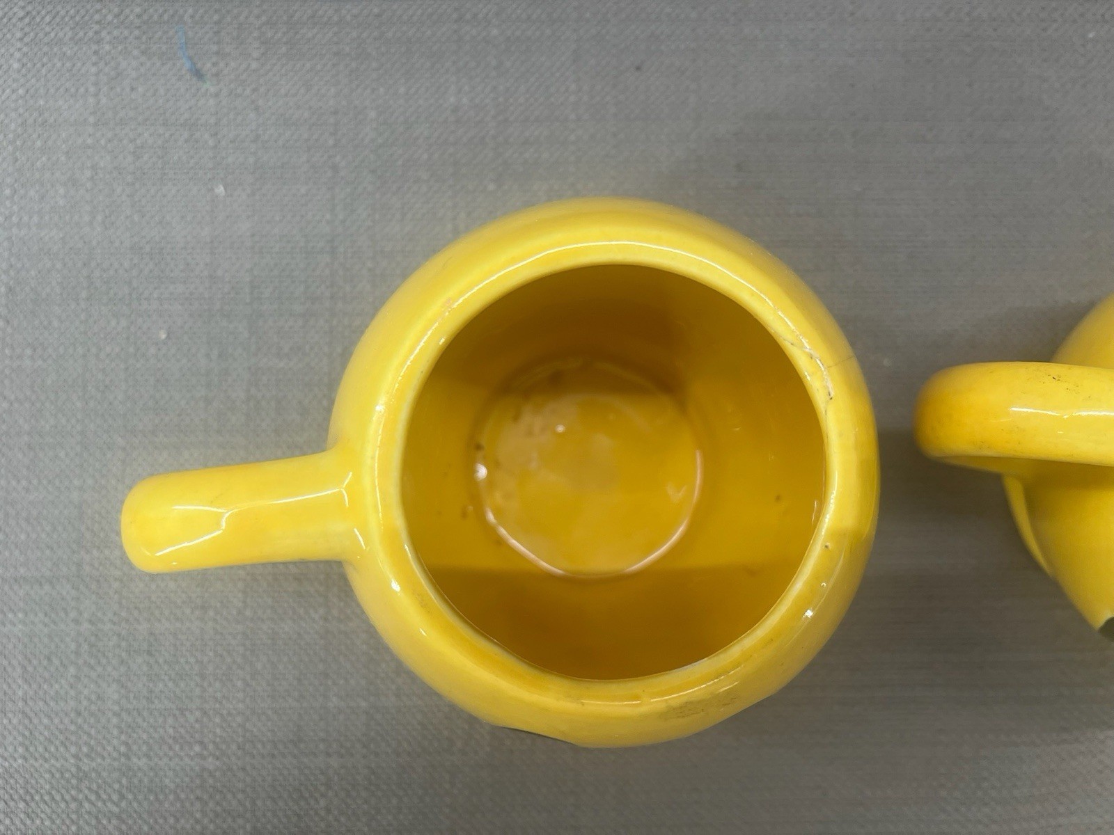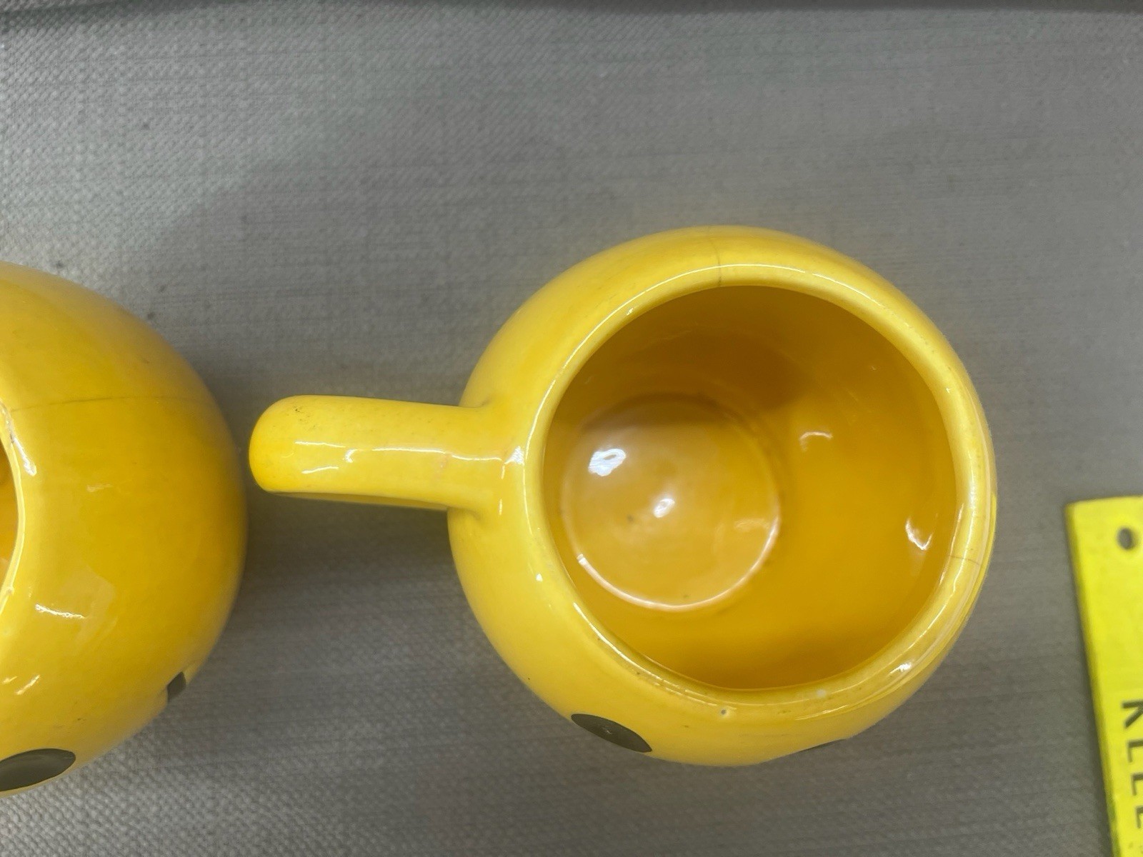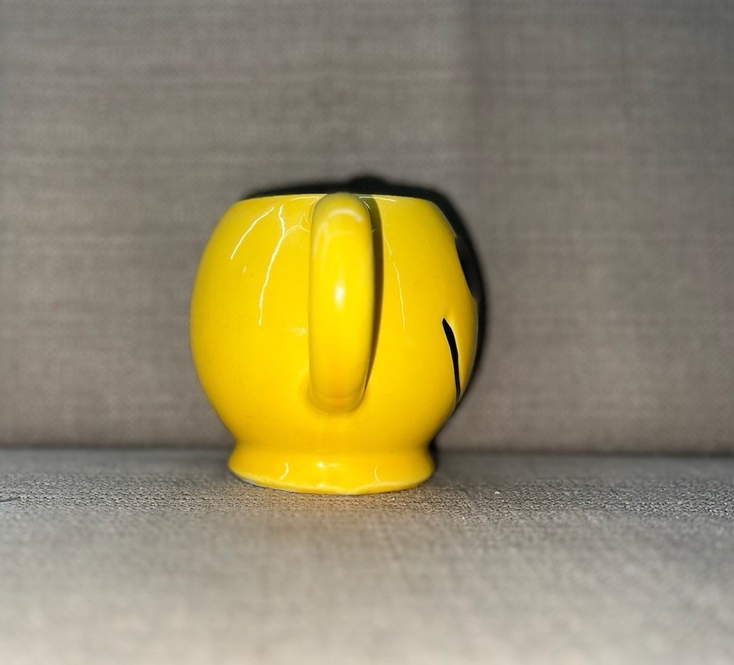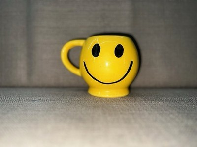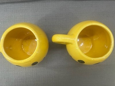 - Two (2) 1970s McCoy Pottery Smiley Face Mugs Dark Yellow Excellent Condition