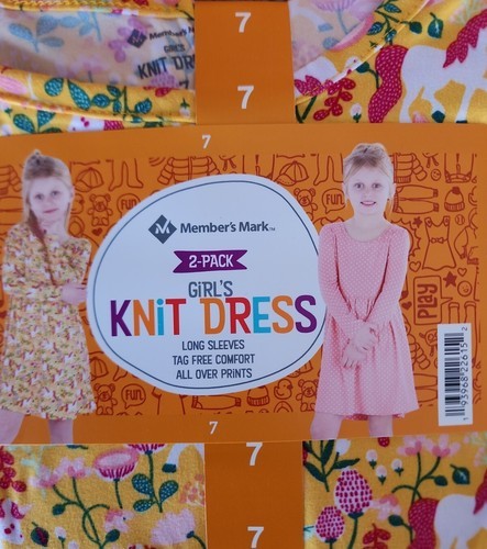 Primary image for Two (2) Member's Mark™ ~ Girl's Size 7 ~ Long Sleeve All-Over Print Knit Dress-1
