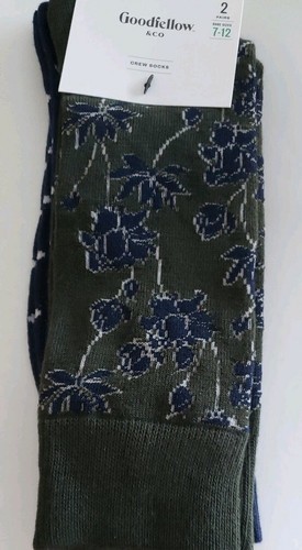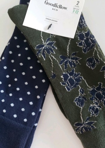 This sale is for Two (2) pair of Goodfellow Co? Men's Novelty Crew Socks Perfect for any occasion You will receive One (1) pair of Green Floral One (1) pair of Navy Blue with Polka Dot Colored Socks Men's Size 7-12 98% Polyester 2% Spandex Machine wash ~ Tumble dry Socks are brand new in original packaging Please view photos for a good description of these socks Thank you!