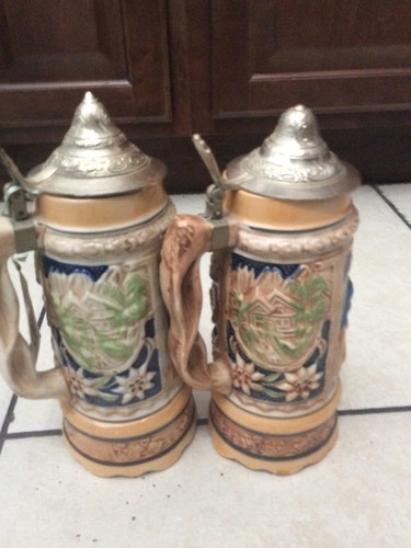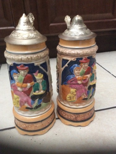 Two Original Rare Hand Painted Embossed Beer Stein Music Box -Made in Japan. Condition is "Used". Shipped with USPS Priority Mail.
