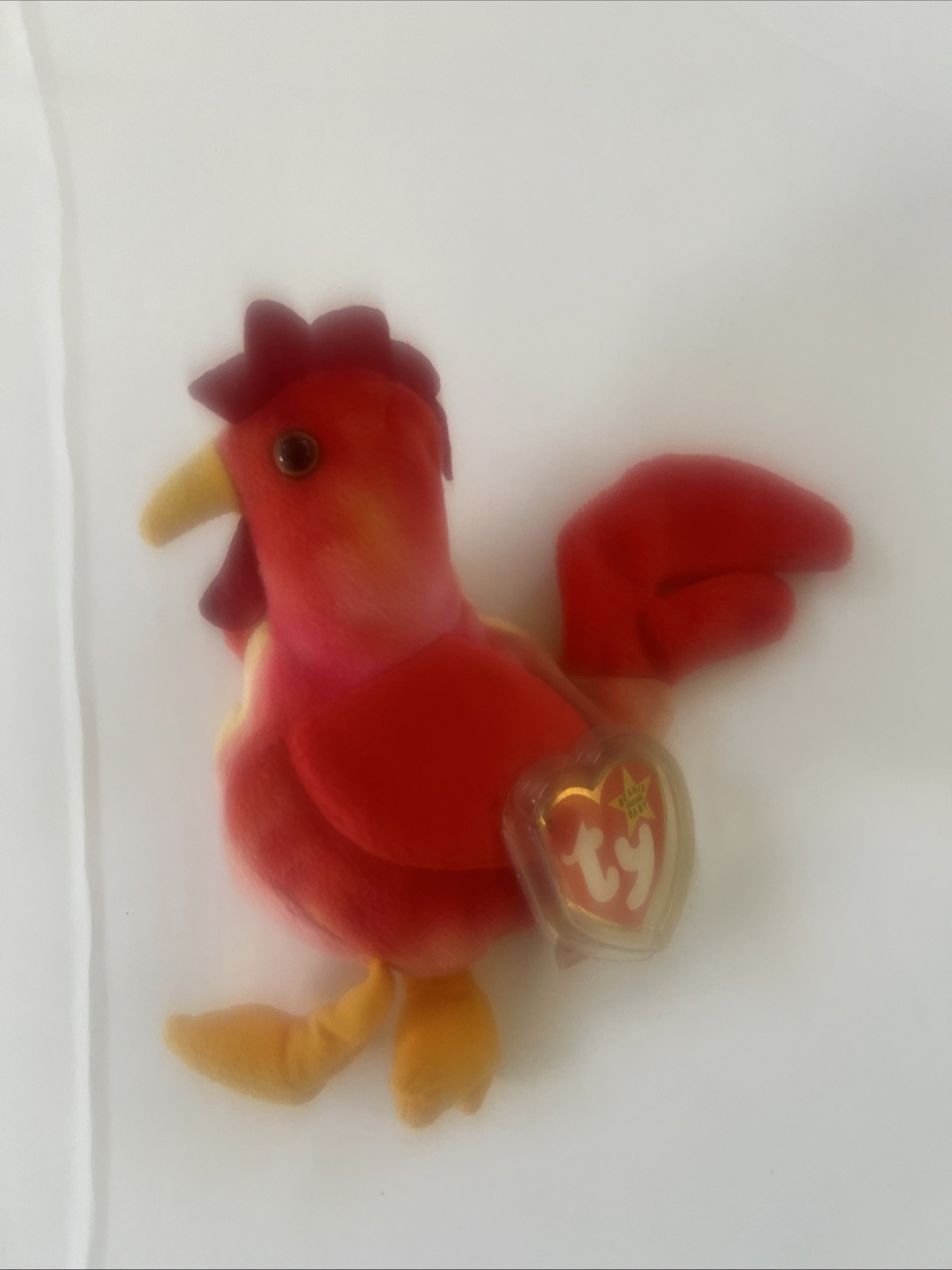 - Ty Beanie Baby DOODLE The Rooster Chicken Style 4171 DOB 3-8-96 PVC Pellets