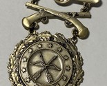 This is an original prototype made in 1958. Pinback with functional rotating clasp. The reverse is hallmarked (medal reverse) ? BLACKINTON, STER" at the base of the medal; ?STERLING? at the weapons intersection, and "STERLING" on the brooch. Unused, New Old Stock (NOS). Nice clean EIC badge/medal.