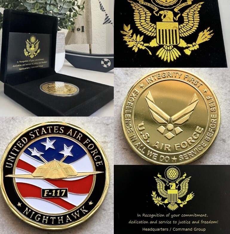 U S AIR FORCE F-117 NIGHTHAWK Challenge Coin With Retirement Award