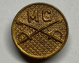 U.S. ARMY, CIRCA 1926-1937, TYPE II, COLLAR DISK, CAVALRY, MACHINE GUN Measures approx. one inch in diameter. Screw back. The distinction between Type I and Type II disks is minor and is one made by collectors rather than the military. Type I and Type II disks continued in use until the advent of the Type III disk and likely were issued until stocks of them were exhausted after 1937, which was the usual practice by the Army. Type II disks were also one piece screw post disks but have a more intricate background pattern than the Type I disk. The pattern consists of a series of diagonal cross hatched lines with a pattern of shields or acorns in the squares formed by the lines. This background pattern was established as the sole official one by Army Regulations AR 600-35 of December 31, 1926 but existed as a manufacturers variation prior to that time. Prior to 1926 at least six different background types were in use and Type II background appear on disks dated to 1919 according to Albert Scipio. The regulations issued on December 31, 1926 also abolished the standing collar and introduced a label, rolled collar coat. The collar disks were then worn on the upper collar of the coat's lapels. There are also a few disks with a Type II background produced that were two piece with a branch device that could be removed for cleaning similar to the Type III disks that would follow.