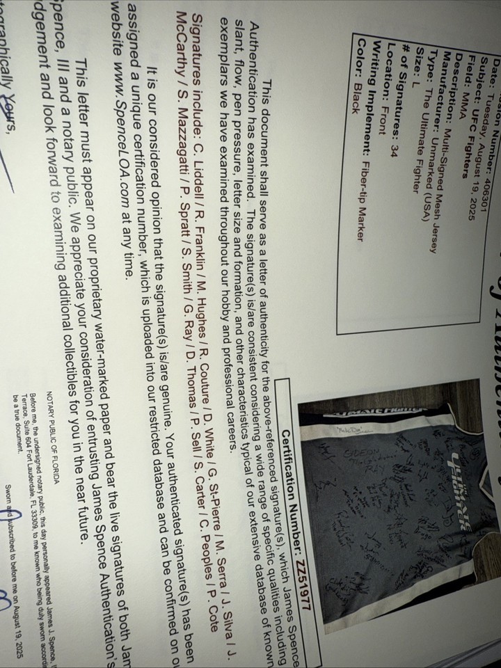 To name the big signatures. Dana White GSP John McCarthy Joe Silva Chuck Liddell Matt Hughes Rich Franklin and Matt Serra. Also signed and inscribed by UFC ref Steve Mazzagati. This is an opportunity to own an amazing piece of UFC history. JSA certified authentic