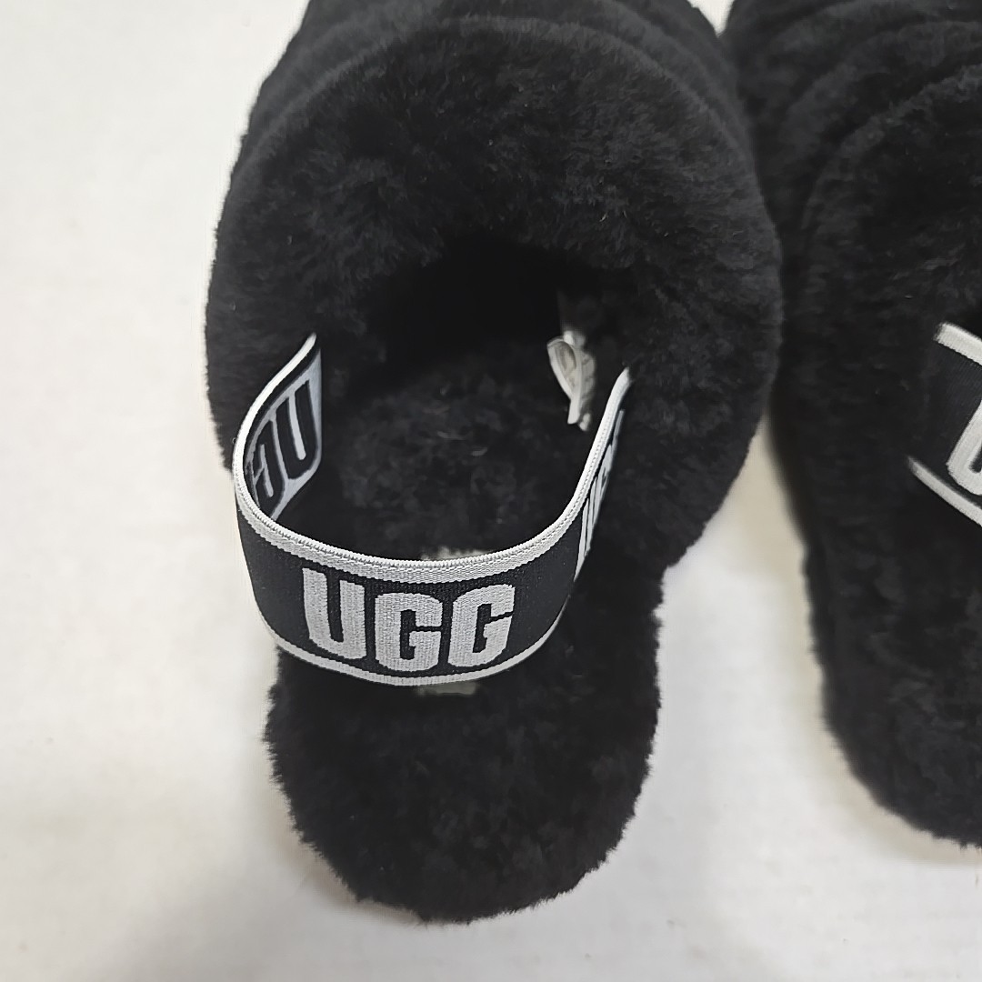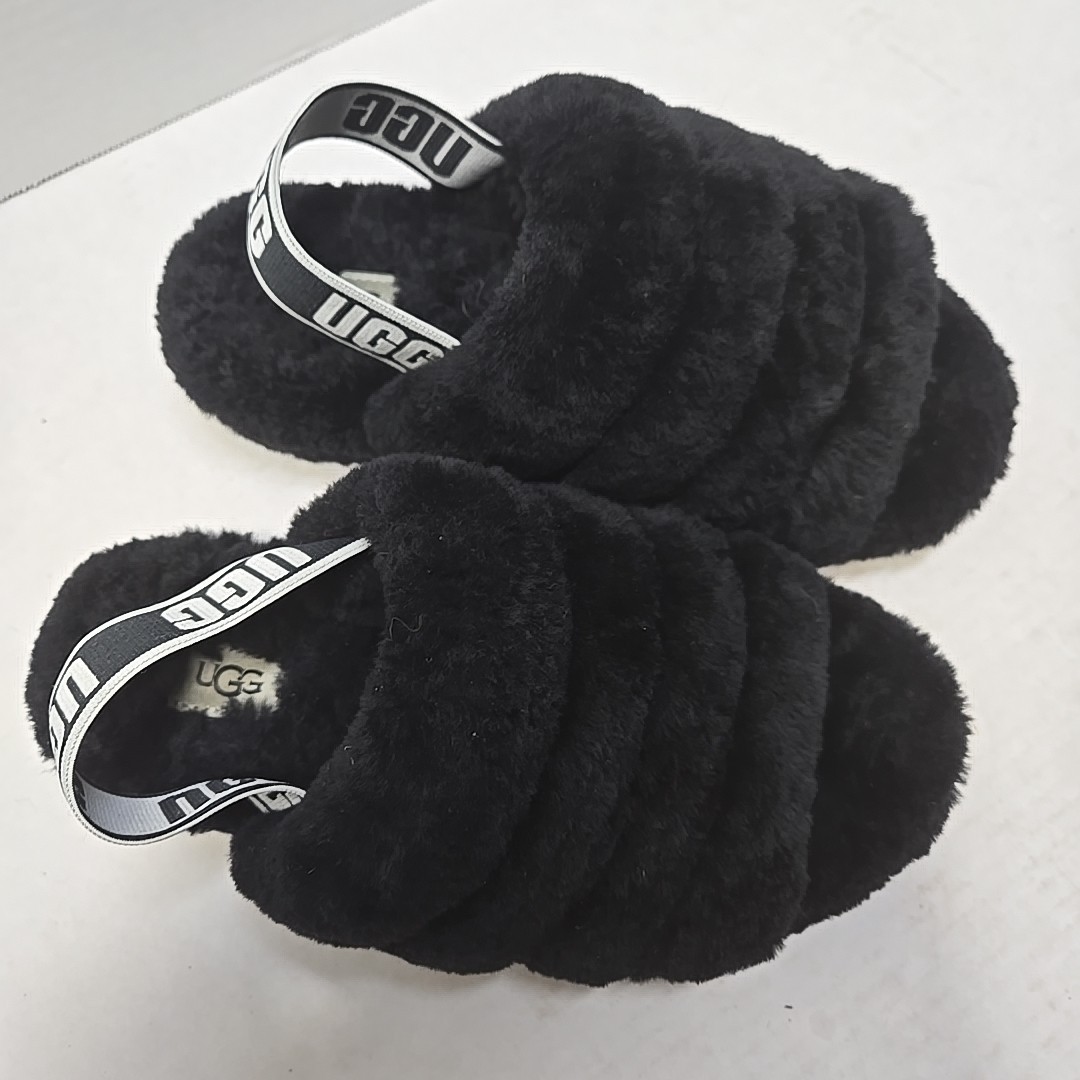 - UGG Women's Fluff Yeah Slides Slippers Size 6 Black White Ankle Strap Soft