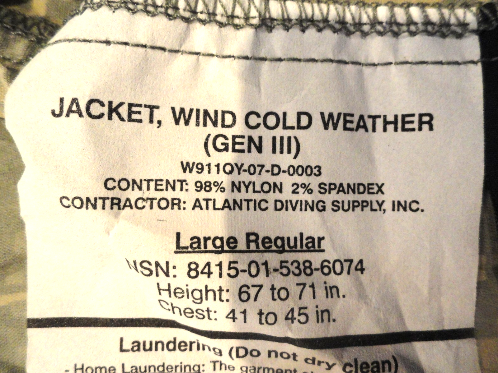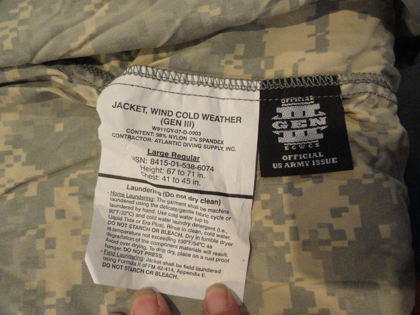 US Army L4 ACU UCP CAMO Cold Weather Wind Jacket Large Regular 8415-01-538-6074 NEW