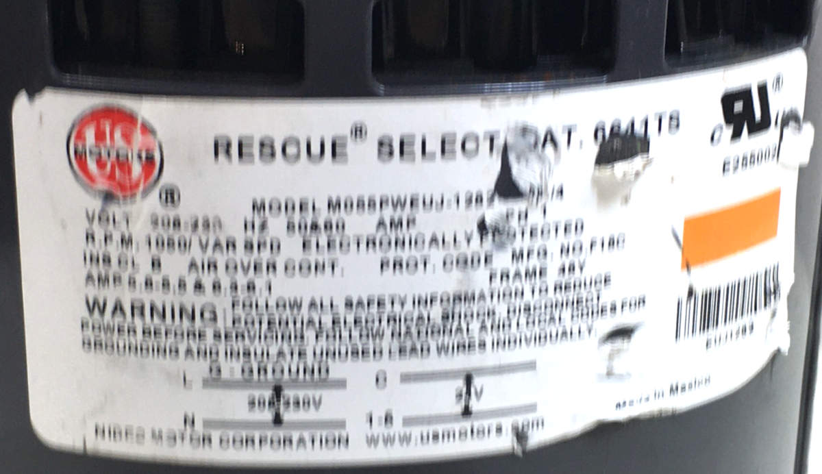 This is US Motors M055PWEUJ-1282 Blower Motor Ver. 44 3/4HP 208/230V CW Lead End rotation, used motor. Has been tested and works well. Please see more details from the images attached. Please learn images carefully because you will receive exactly the same motor as pictured. FREE standard Ground mail delivery offered. My handling time is 1 business day only. Purchasing used parts you agree with the statement that sometimes hidden defects or malfunctions may occur during installation or continuous use. There is no warranty on used parts. Most of the parts require specific knowledge and skills to be installed properly. If you don?t have skills or knowledge, you must ask certified HVAC technician to install. I am not liable for any damages or failures as a result of improper installation.