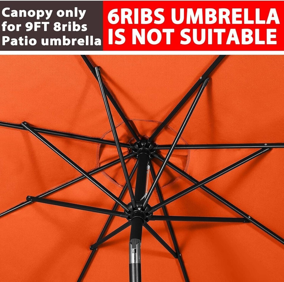 - UV Protective 9ft Round Canopy for 8-Rib Outdoor Umbrellas in Bright Orange