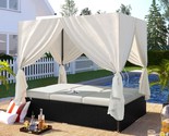 U_STYLE Outdoor Wicker Sunbed Daybed with Adjustable Seats & Cushions