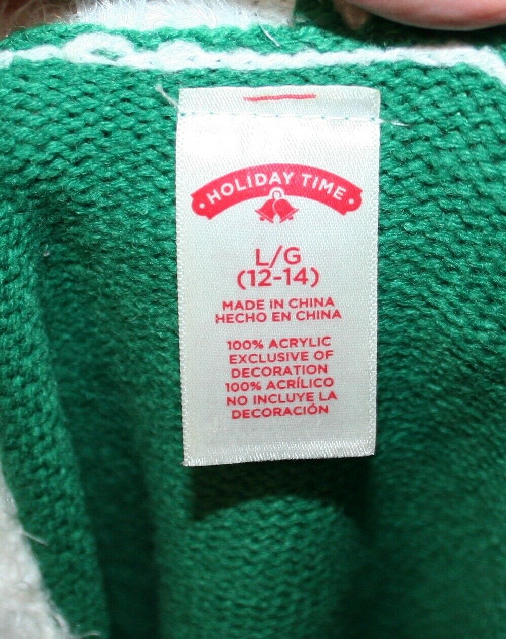 This sweater is in Excellent condition with no holes or tears. There is one "ball" missing from left ear...