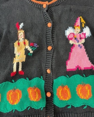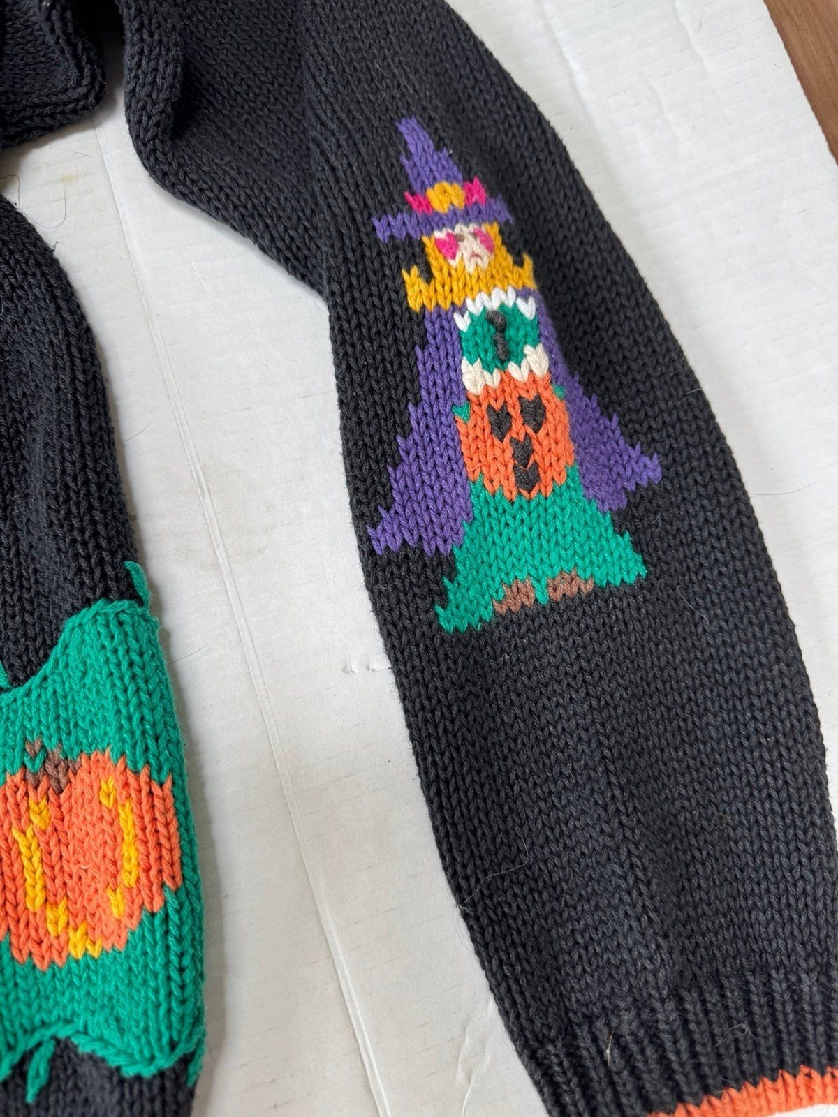 - Ugly Halloween Hartstrings Knit Sweater Grandma VTG Holiday 3D Cardigan Small