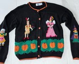 Ugly Halloween Hartstrings Knit Sweater Grandma VTG Holiday 3D Cardigan Small