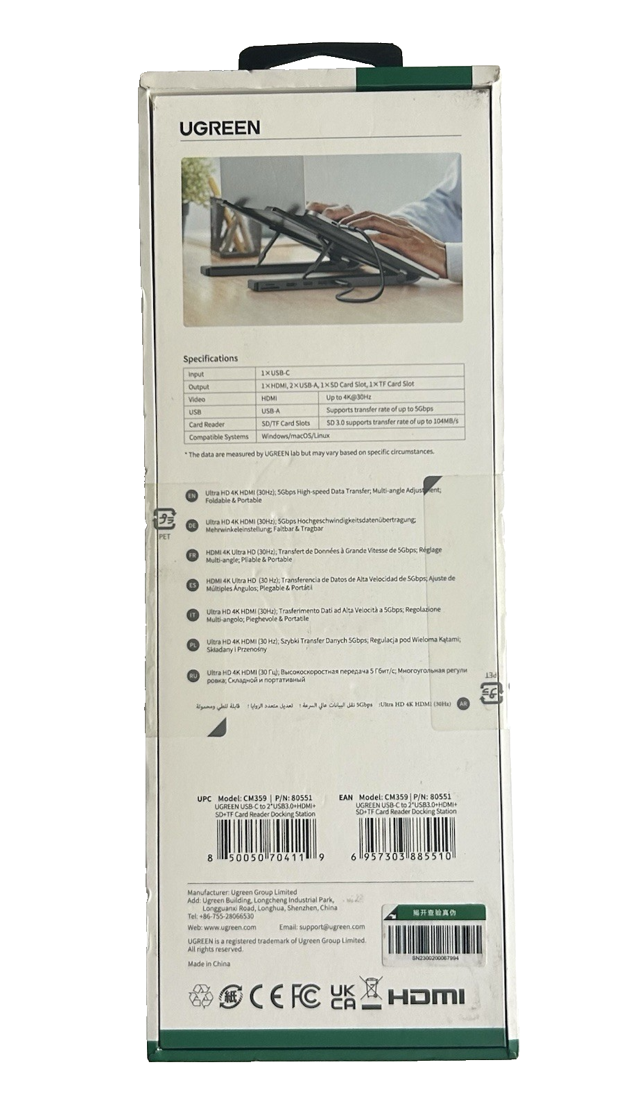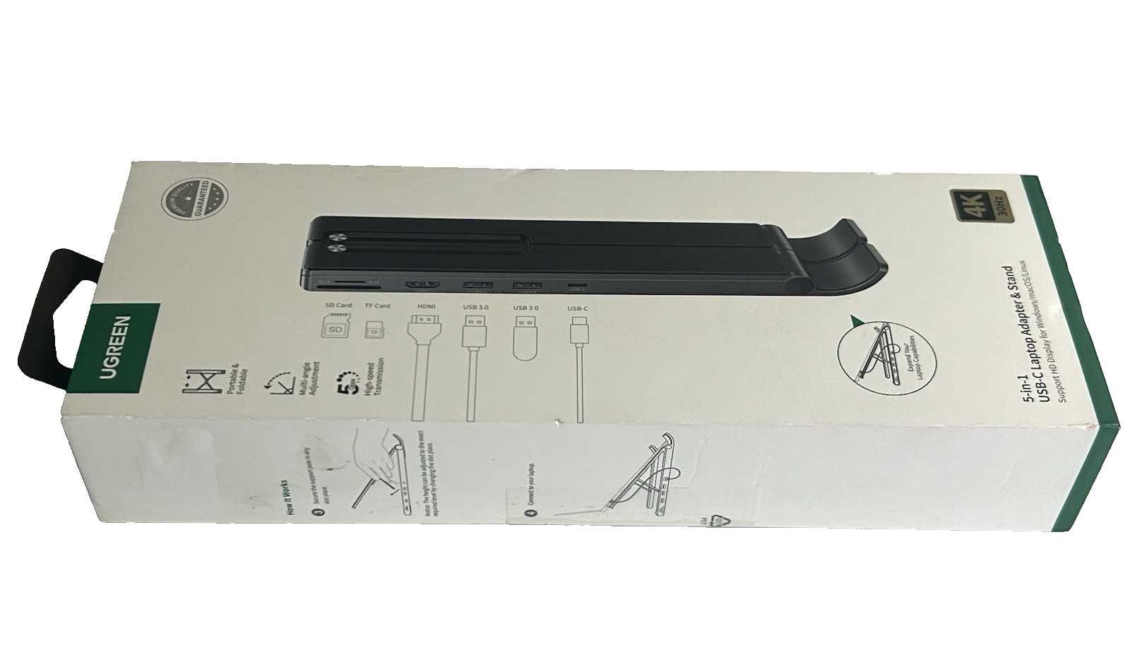 This is for a brand new factory sealed UGREEN 5-in-1 USB-C Laptop Adapter Stand Docking Station HDMI/USB-A/SD/TF