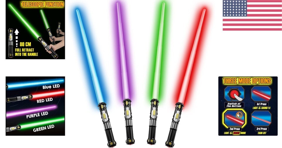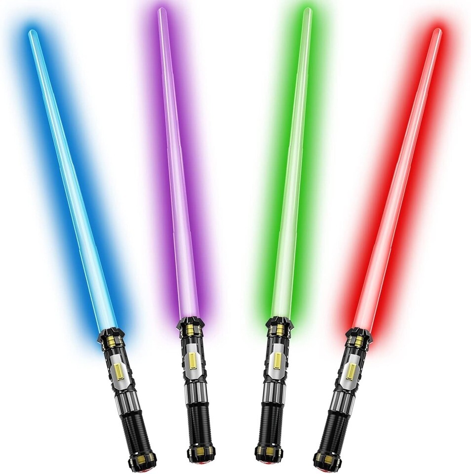 - Ultimate 4 Pack Light Up Swords Set with Retractable Handles & FX Sound Effects