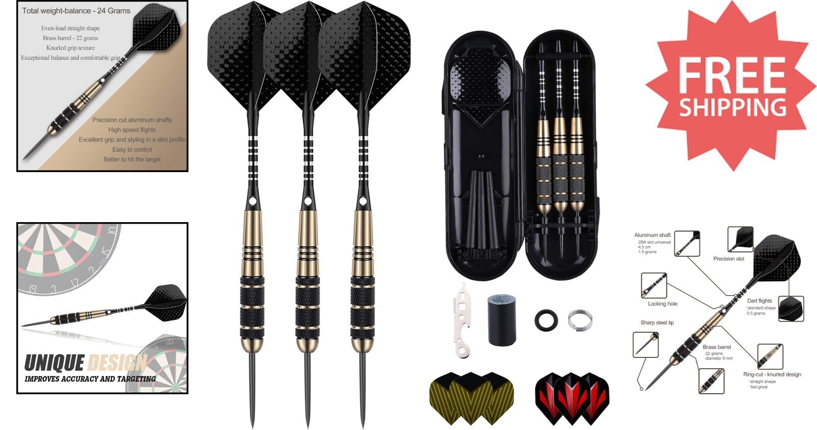 - Ultimate Darts Bundle - Steel Tip Darts, Flights, Sharpener, 24/27g Options