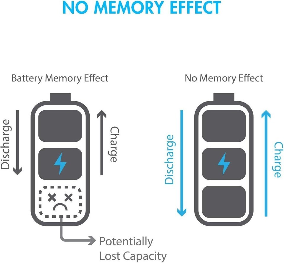 No Memory Effect: Charge your battery at any time?there's no need to fully discharge. Enjoy reliable, full capacity consistently with every charge.