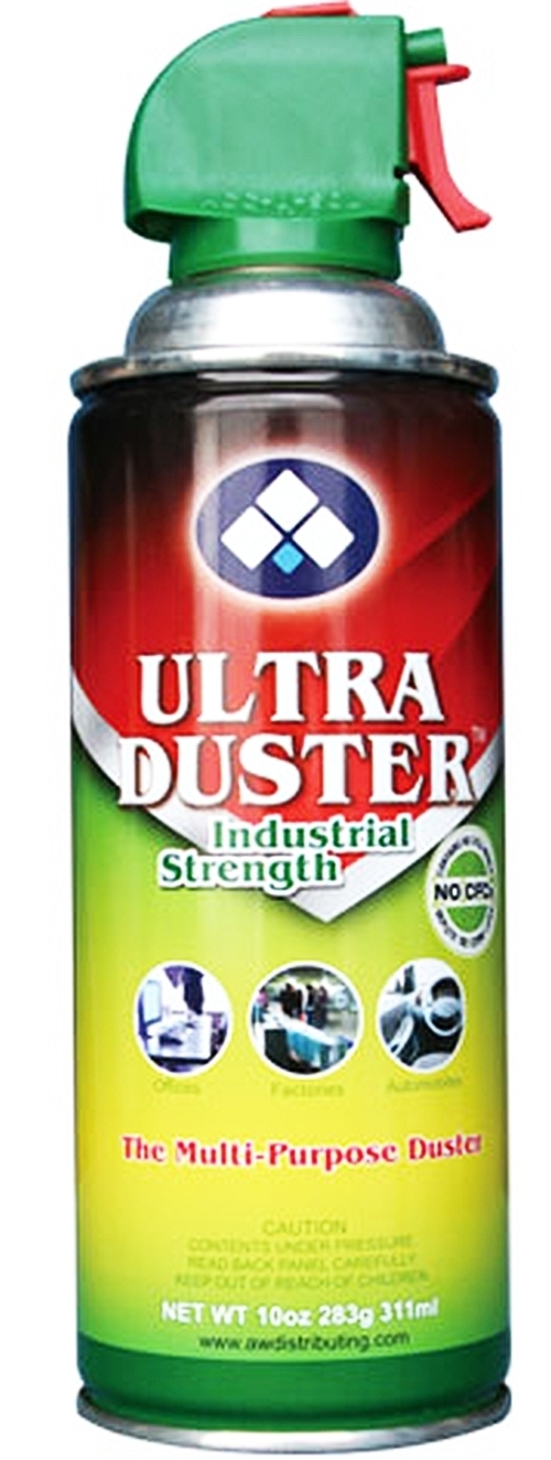 FOR SALE IS ONE (1) NEW CAN OF ULTRA DUSTER INDUSTRIAL STRENGTH MULTI PURPOSE DUSTER 10 ounce CAN OF COMPRESSED AIR WITH MAJESTIC SPRAY HEAD AND REMOVABLE RED STRAW BY AW DISTRIBUTING INCORPORATED MPN UDS-10MS UPC# 811196011158. ULTRA DUSTER IS A 152a COMPRESSED GAS STERILIZED AIR CLEANER DUSTER. PRIMARY USAGE IS TO BLAST DUST, DIRT AND UNWANTED MICRO PARTICLES AND DEBRIS AWAY FROM COMPUTERS, KEYBOARDS, PRINTERS, ELECTRONICS, PHOTO EQUIPMENT, FIREARMS, MUSICAL INSTRUMENTS, AUTOMOBILE DASHBOARD, VENTS, SPORTS EQUIPMENT, ANYWHERE YOU NEED A BLAST OF AIR. ULTRA DUSTER DELIVERS INDUSTRIAL STRENGTH COMPRESSED STERILIZED AIR, EFFECTIVELY CLEANS BY REACHING THOSE HARD TO CLEAN AND HARD TO REACH AREAS AND THEREFORE HELPS MAINTAIN PREMIUM PERFORMANCE OF ELECTRONIC DEVICES, LIKE A LAPTOP COMPUTER, REQUIRING A poof OF AIR PERIODICALLY AROUND THE CPU FAN VENT(s) FOR BEST PERFORMANCE. USE THIS CAN WITH THE MAJESTIC SPRAY HEAD, OR THE REMOVABLE RED STRAW FOR PRECISION AND CONCENTRATED APPLICATION. ULTRA DUSTER BRAND COMPRESSED AIR IS EARTH FRIENDLY AND CONTAINS NO CFCs (freon). YOU WILL RECEIVE ONE (1) FACTORY FRESH 10 ounce CAN OF ULTRA DUSTER COMPRESSED AIR WITH MAJESTIC SPRAY HEAD AND RED STRAW SHIPPED BY USPS FIRST CLASS MAIL.....