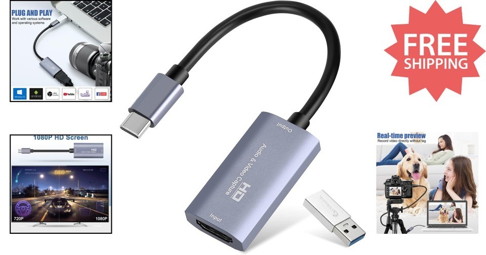 Experience seamless gameplay and high-quality streaming with our 1080P 60FPS Video Capture Card. Equipped with a USB 3.0 high-speed port and support for up to 4K@30Hz input resolution, it effortlessly connects with most devices via Type-C and USB interfaces. Its ultra-low latency design, durable aluminum alloy construction for superior heat dissipation, and plug-and-play setup ensure smooth and reliable live gaming, recording, and conferencing. Compatible with Windows, Mac, Linux, Android, and popular streaming platforms like Facebook, YouTube, and Twitch, it?s your ideal tool for content creation on the go. Lightweight and portable, it?s perfect for outdoor streaming, game recording, and online teaching. Complete with a USB-C adapter and user manual, your professional-quality broadcasts are just a connect away.