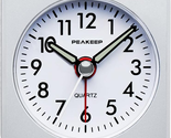 Ultra Small, Battery Travel Alarm Clock with Snooze and Light, Silent with No Ticking Analog Quartz (White)