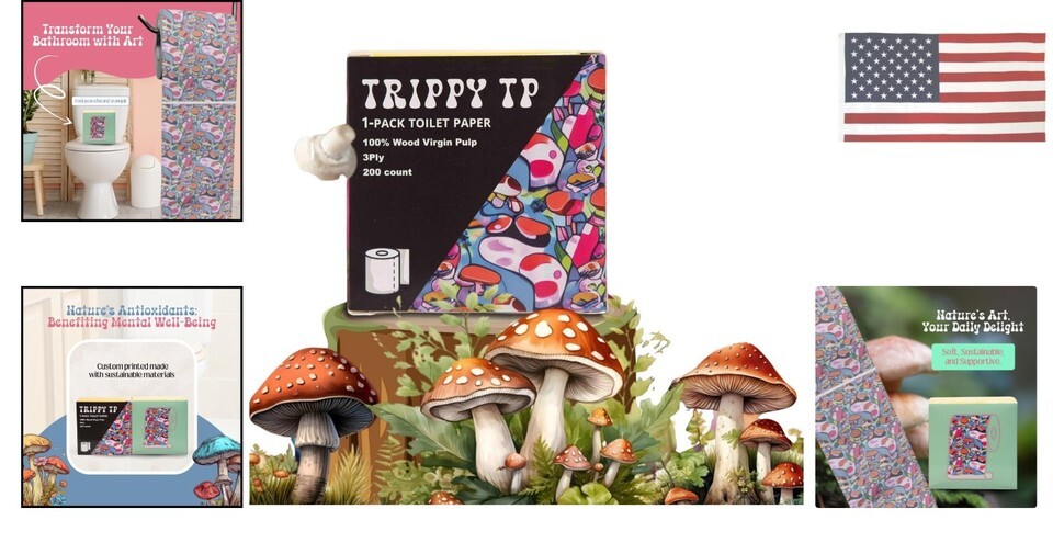 Indulge in the luxurious softness of our Ultra Soft Toilet Paper, where comfort meets purpose. Each roll, made from 100% wood pulp, is designed to be absorbent and durable without compromising on sustainability. Adorned with stunning nature-inspired prints, this product not only enhances your bathroom decor but also supports vital therapeutic endeavors. Every purchase helps fund crucial mushroom therapy research, offering hope and assistance in combating mental health challenges.