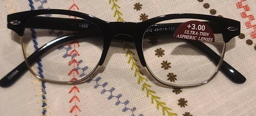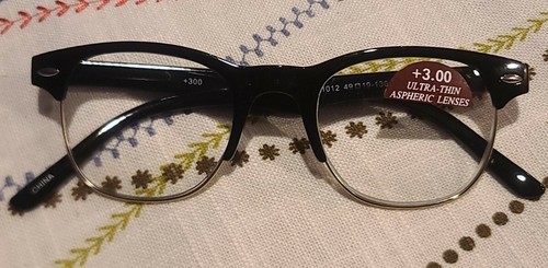 This sale is for one (1) pair of reading glasses +3.00 Strength Black gold in color Ultrathin Aspheric Lenses Brow Line Glasses ~ Model #R1012 Eye size 49 Bridge size 19 Temple size 136 Provides protection from harmful UV rays and meets ANSI Z80.3 impact standards Glasses are new ~ never used Please view photos for a good description of these glasses Thank you!