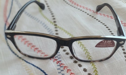 This sale is for one (1) pair of reading glasses +3.00 Strength Spring hinges Brown clear in color (Tortoise) Ultra Thin Aspheric Lenses Model #R2050 Eye size 49 Bridge size 18 Temple size 140 Glasses are new ~ never used Please view photos for a good description of these glasses Thank you!