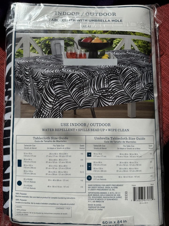 - Umbrella Tablecloth 60 x 84 Oblong Zipper Kauai Black White Tropical Fabric